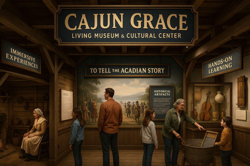 To preserve Cajun Grace as a living museum and cultural education center that tells the story of the Acadian people through immersive experiences, historical artifacts, and hands-on learning.